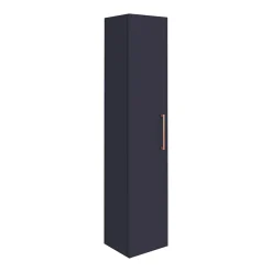 Arezzo Matt Blue Wall Hung Tall Storage Cabinet With Rose Gold Handle