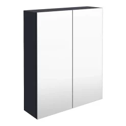 Arezzo Matt Blue Mirrored Wall Hung Tall Storage Cabinet With Matt Black Handles