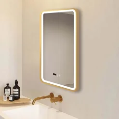 Arezzo Brushed Brass 500 X 700mm Rectangular LED Illuminated Anti-Fog Bathroom Mirror